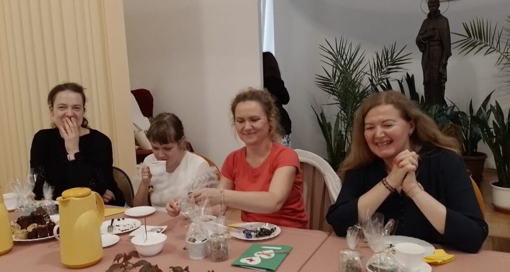 Wspólne spotkanie rozpoczęło się oczywiście od słodkiego małego co nieco i miłych rozmów przy stole. W drugiej części mogłyśmy razem z naszymi nauczycielami, wychowawcami i Siostrami oddać się zabawie i tańcom. Radości nie było końca.