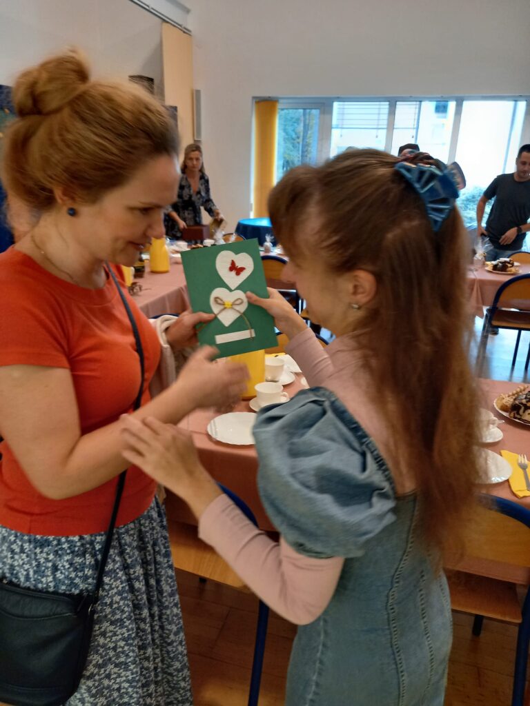 We wtorkowe popołudnie, dnia 3 października miałyśmy okazję uczcić imieniny i podziękować naszym wspaniałym nauczycielom zajęć dodatkowych. Uzbierała się ich niemała grupka: nauczyciele orientacji przestrzennej, terapii widzenia, rehabilitacji ruchowej, zajęć kulinarnych i Pani psycholog. Ku naszemu miłemu zaskoczeniu na spotkaniu pojawili się wszyscy w 100 procentowej frekwencji. Dla naszych gości przygotowałyśmy drobne upominki i kartki okolicznościowe z życzeniami. Były to lawendowa sól do kąpieli i słodkie doniczki z kwiatami, które łatwo pielęgnować, bo nie wymagają podlewania ani nawożenia; wystarczy je tylko zjeść.