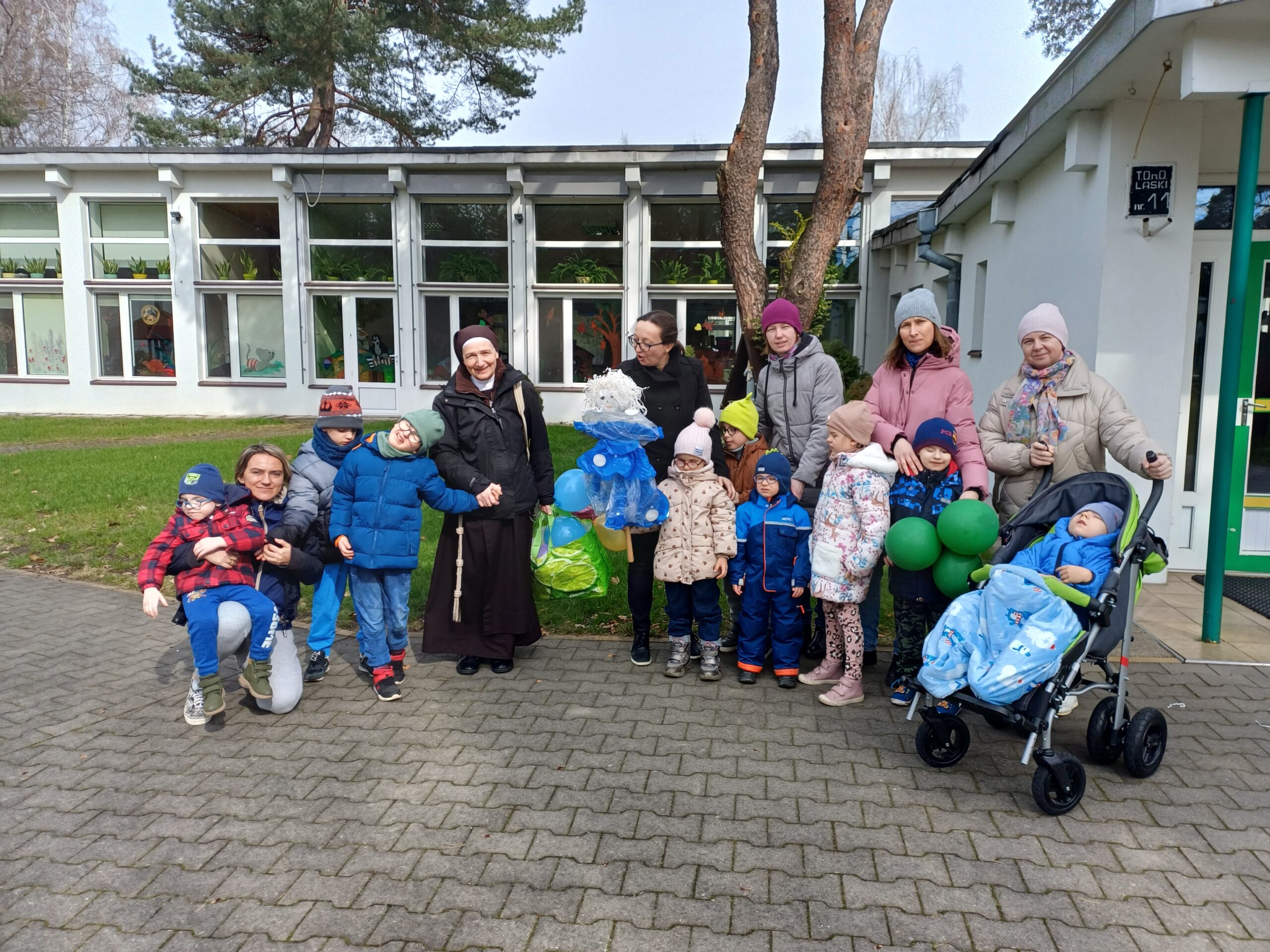 Przedszkolaki odprowadziły Panią Zimę na Północ aby zrobić miejsce dla Pani Wiosny. Śpiewając wiosenne piosenki szukaliśmy oznak rodzącej się przyrody na teranie naszego Ośrodka.