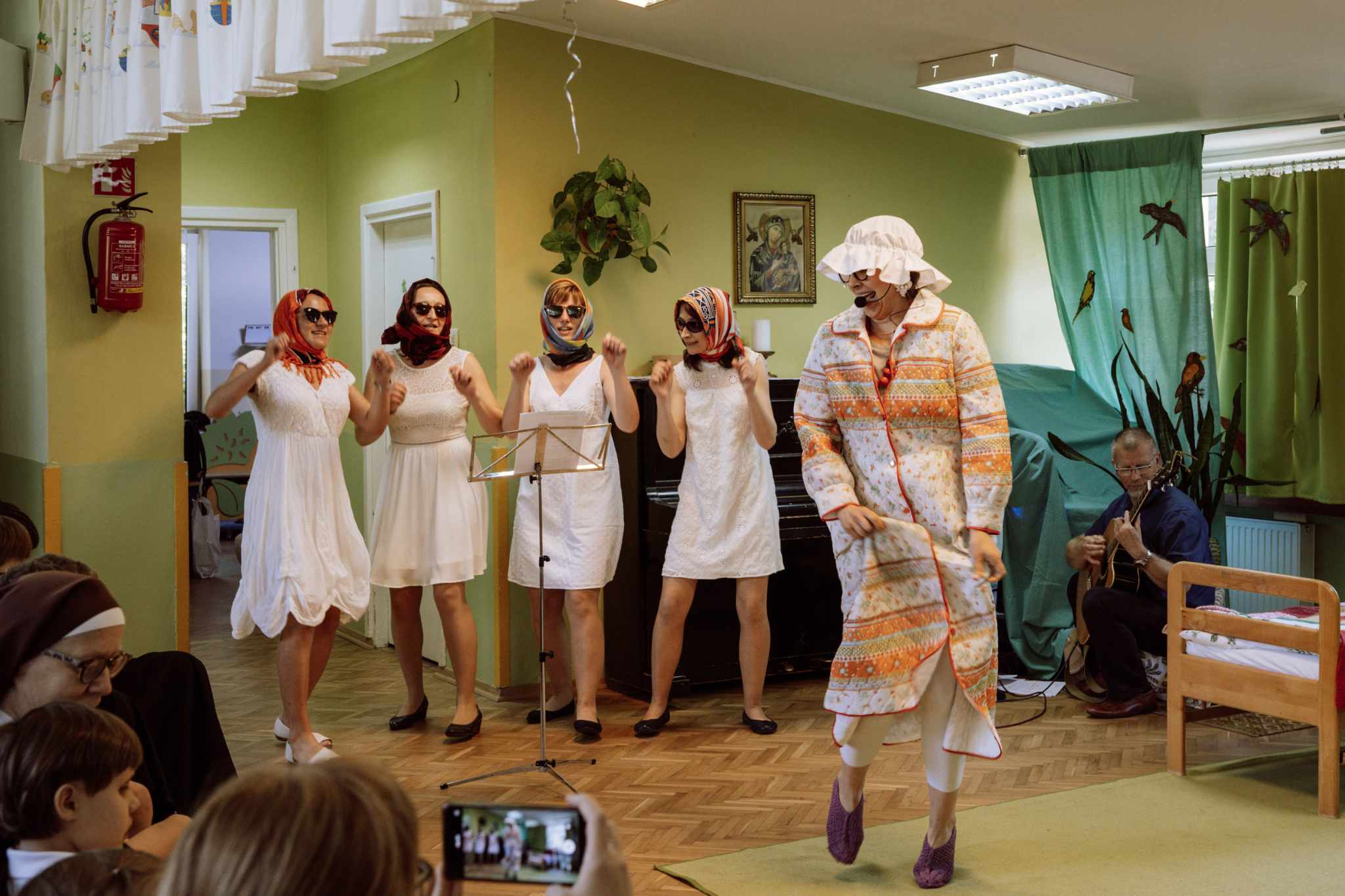 Dużym przeżyciem dla dzieci i rodziców był udział we wspólnej zabawie z okazji Święta Rodziny, które odbyło się 07.06.2024r. W tym dniu wszyscy wzajemnie obdarowywali się życzliwością, radością oraz niecodziennymi prezentami. Dzieci przygotowały dla swoich rodziców prace z gliny i zaśpiewały piosenki. Rodzice i nauczyciele natomiast wykonali przedstawienie dla dzieci ” Czerwony Kapturek” wzbudzając wielkie emocje i brawa za zaangażowanie i świetną zabawę. Po występach wszyscy udali się na plac zabaw na słodki poczęstunek i dalsze świętowanie.