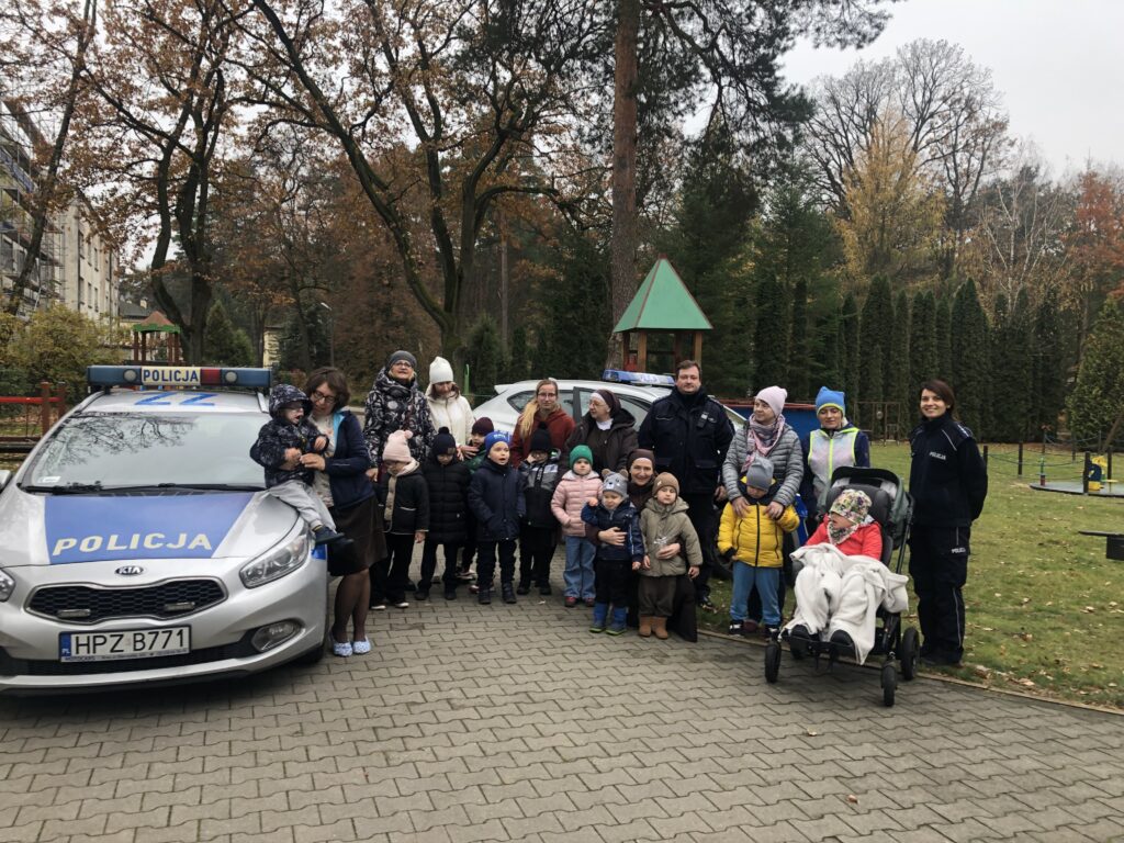 8 listopada w naszym przedszkolu zjawili się niecodzienni goście: pani aspirant Martyna Podolska z Komendy Policji w Starych Babicach oraz pan aspirant Łukasz Matysiak nasz dzielnicowy. Przypomnieli nam jak być bezpiecznym na drodze oraz gdzie zadzwonić, gdy zdarzy się wypadek. Uświadomili nam, jak ważne jest to, aby być widocznym na drodze, szczególnie po zmroku. W prezencie rozdali wszystkim odblaski i zachęcili do noszenia ich w widocznym miejscu. Dzieci zadawały pytania i dzieliły się swoimi doświadczeniami. Dużą atrakcją było oglądanie kajdanek oraz krótki przejazd policyjnymi radiowozami, które zaparkowały przed przedszkolem. Serdecznie dziękujemy zaproszonym gościom za poświęcony czas i życzliwość. Myślę, że przedszkolaki, jak i towarzyszący nam pierwszoklasiści, będą dumie prezentować swoje odblaski, bezpiecznie poruszając się po drogach.
