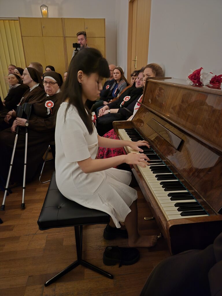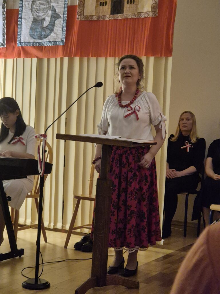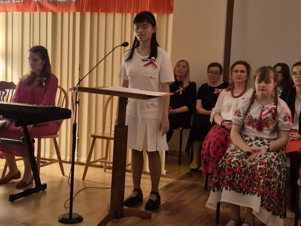 Repertuar obejmował kilkanaście piosenek m.in. „Rozkwitały pąki białych róż”, „ O mój rozmarynie”, „Czerwone maki na Monte Casino”, „Pałacyk Michla” , „Dziś idę walczyć mamo”, „ Ojczyznę”, „ Gdzie są chłopcy z tamtych lat”, wiersze i utwory Chopina.  Z indywidualnie wykonanymi pieśniami, wierszami i grą na pianinie wystąpiły H. Nguyen, O. Kolesnyk, J. Maksymiuk, A. Romas, L. Zlobina.  Gościnnie wystąpili w  koncercie państwo Elżbieta i Bronisław Harasiuk oraz pani Marzena Olkowska.