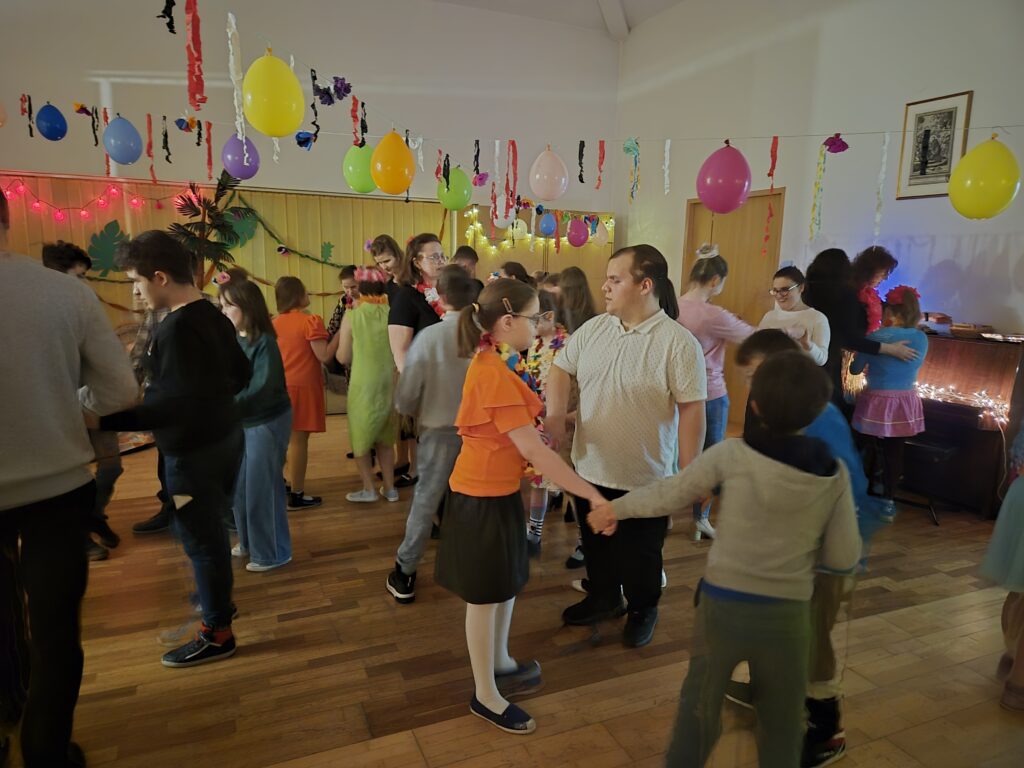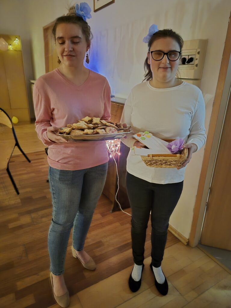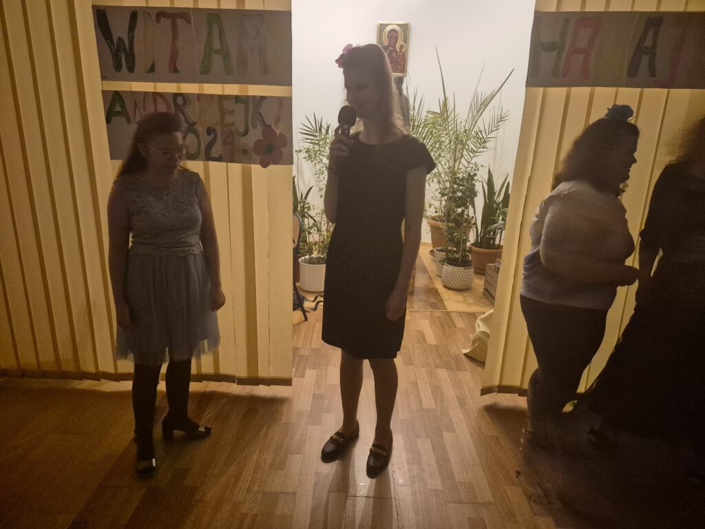 Już na początku listopada rozpoczęły się do niej przygotowania. Pani Iza czuwała nad przygotowaniem playlisty- latino przebojów, ale i nie tylko. Pani Asia przygotowała życzenia andrzejkowe, które zostały wydrukowane w czarnodruku i brajlu. Niesamowicie tutaj potrzebni okazali się nasi wolontariusze pan Rafał i pani Weronika, którzy służyli pomocą w ozdabianiu życzeń i wykonywaniu ozdób.