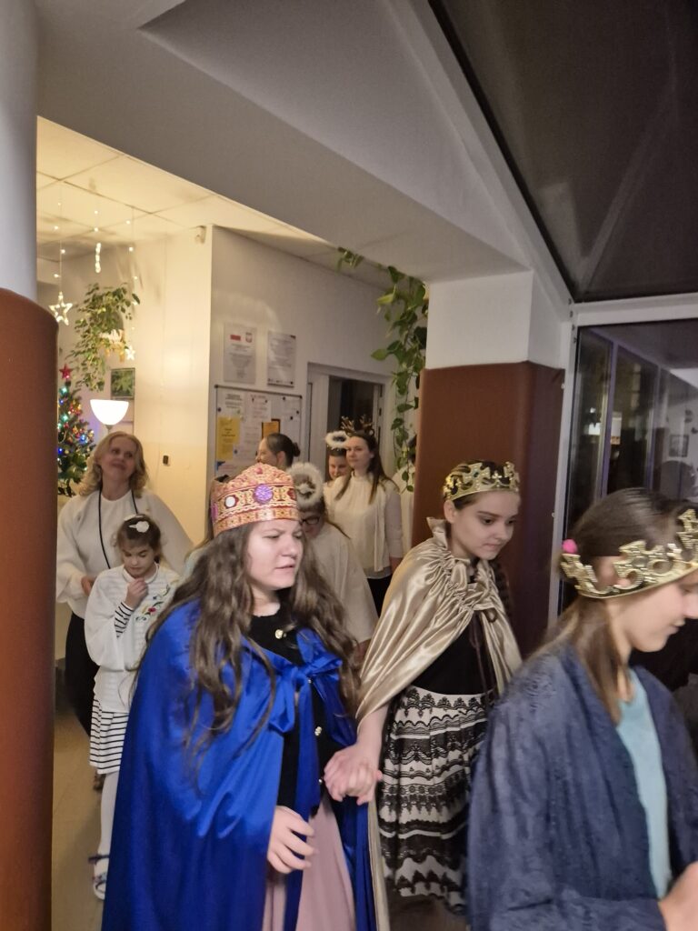 Do gwiezdnego orszaku , który swój początek miał przy internatowej dyżurce dołączyli aniołowie (gr. IV i gr. VIII), którzy radosną wieść o narodzeniu Chrystusa przekazali królom (gr. III),a tych w tym roku było więcej niż trzech…