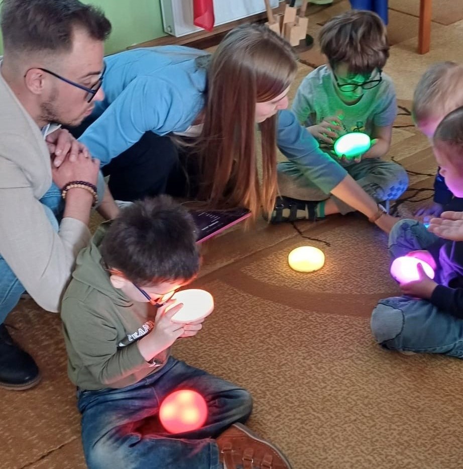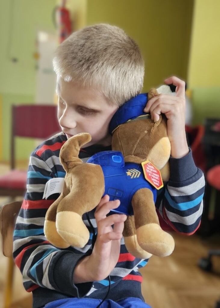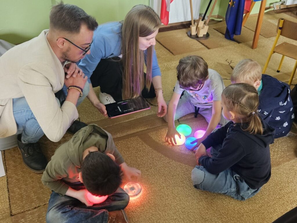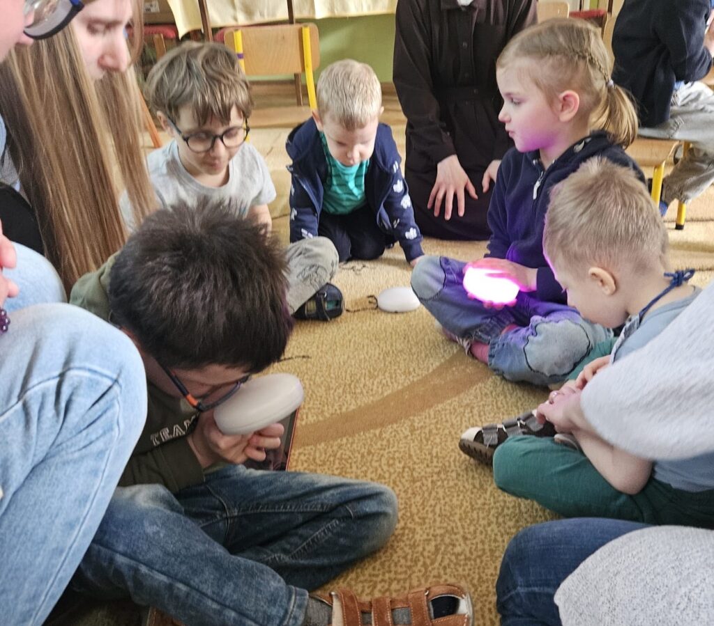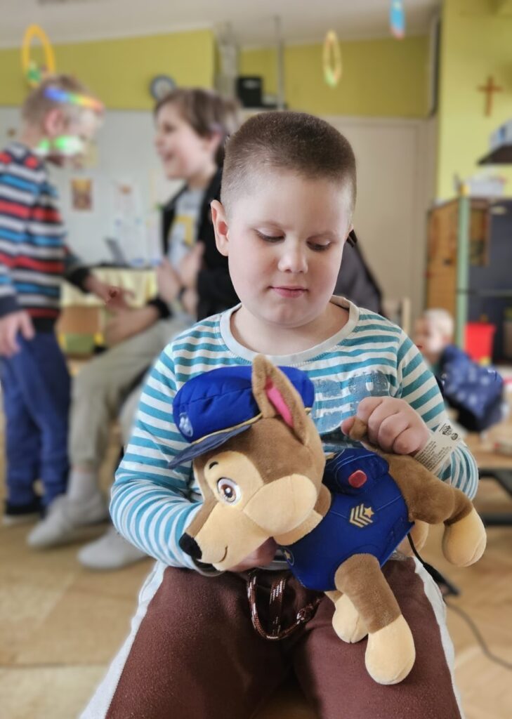 Pni Ola i Pan Dawid przynieśli też sprzęty i nowości techniczne z firmy Includo, które były przyjęte przez dzieci z prawdziwym entuzjazmem. Dzieci mogły za pomocą specjalnego przycisku zatrzymywać i uruchamiać film, oglądały również interaktywne zabawki-pieski, którymi można było sterować poprzez przycisk typu switch.