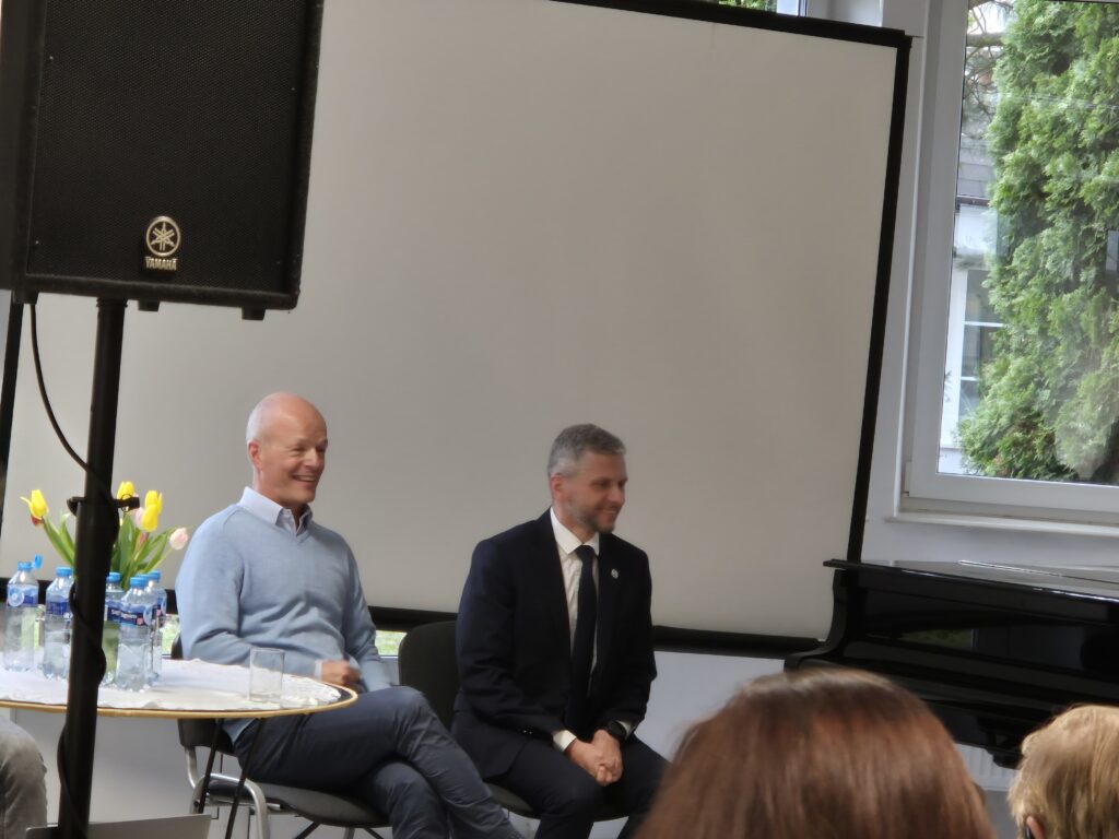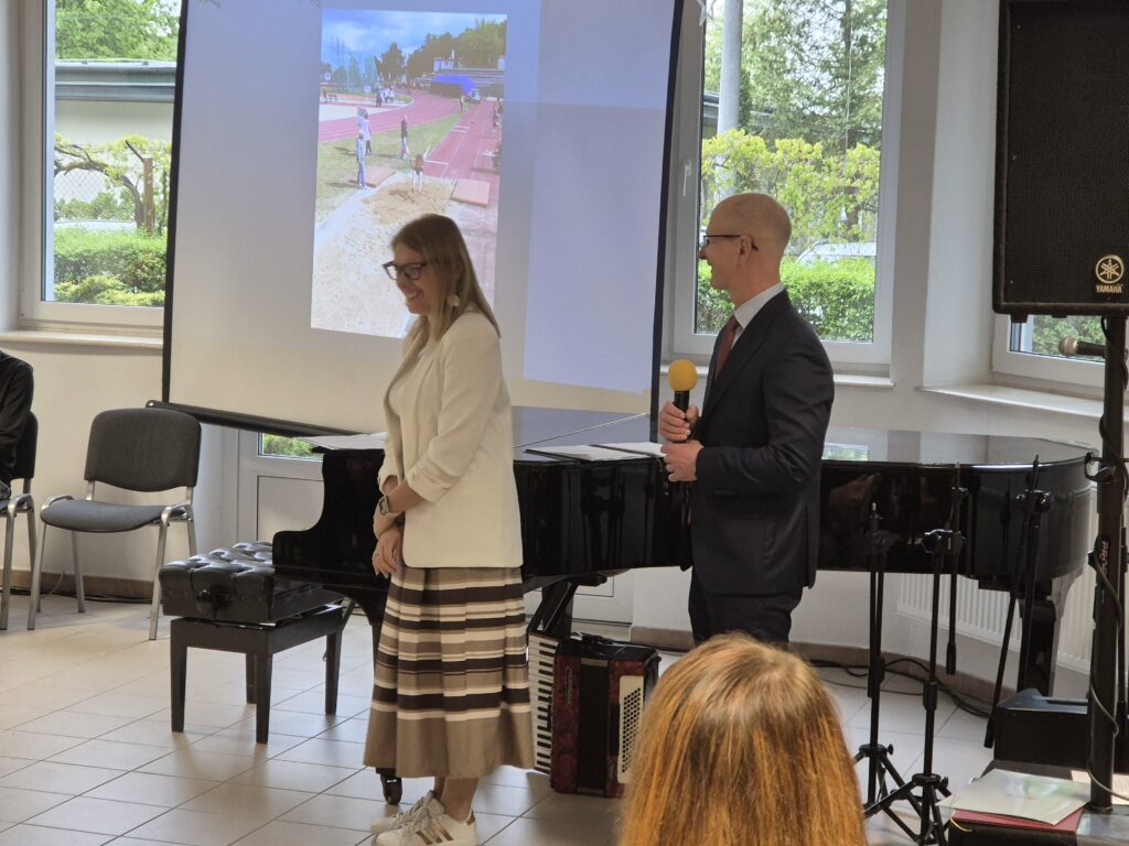 Na koniec uroczystości Dyrektor pani Kamila i pan Leszek zaprosili Prezesa TONOS pana Pawła Kasprzyka oraz Dyrektora Szkoły Specjalnej pana Wojciecha Święcickiego do podzieleniu się swoją pasją – bieganiem. Usłyszeliśmy wtedy, iż bieganie to sposób na stres, na wyciszenie się i oderwanie od wielu problemów.
