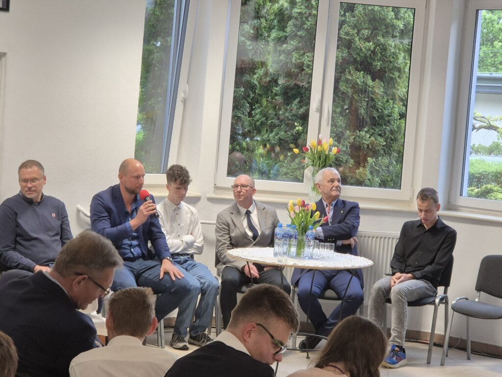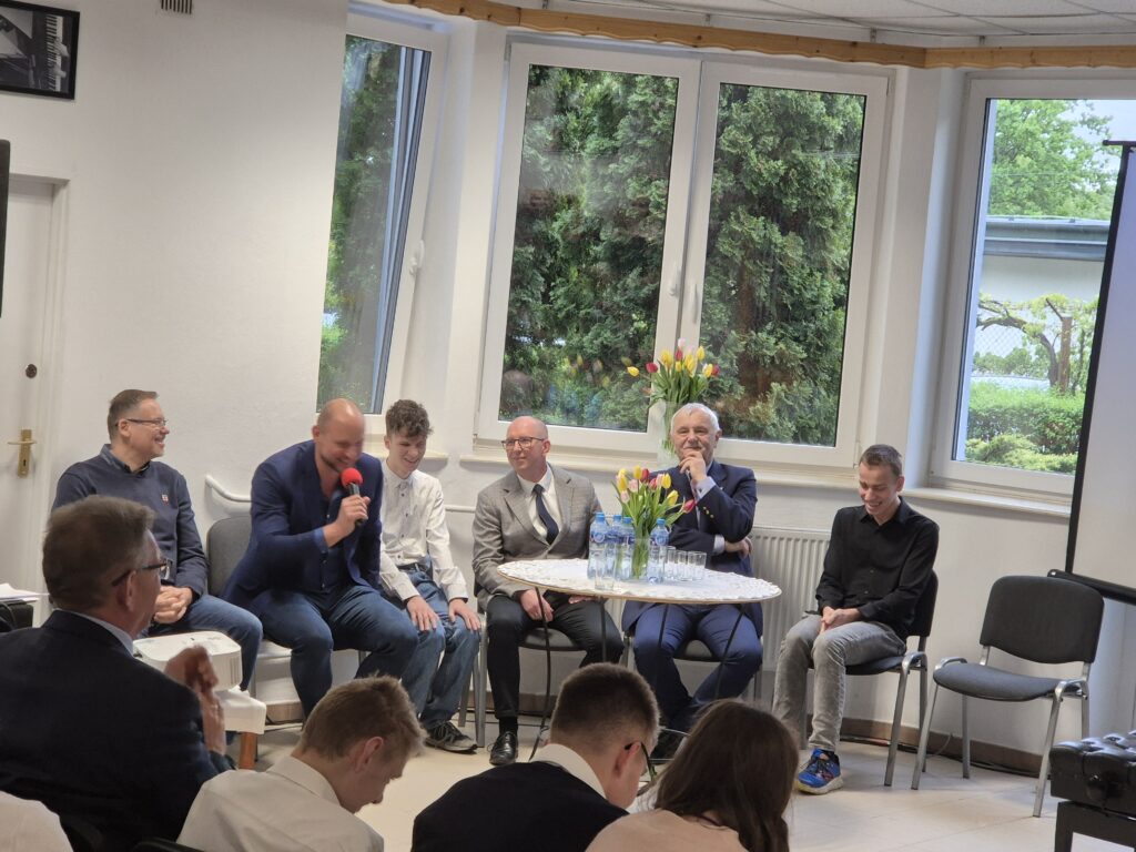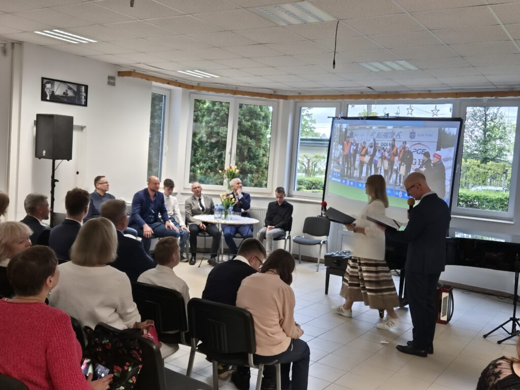 Na spotkaniu pojawili się panowie trenerzy Waldemar Madej, Krzysztof Koc i Tadeusz Koc, Robert Mazurek. Prowadzący zadawali ciekawe pytania , nie zabrakło ” dowcipów – sucharów”, pytań dotyczących historii rozwoju sportu w Ośrodku, było o wyławianiu talentów: Polkowskim, Pietrasiku, o umiejętności dokonywania wyboru pomiędzy dwiema pasjami np: pływaniem a szkołą muzyczną. O wielkiej sile, wytrzymałości, harcie ducha podczas treningów i zawodów.