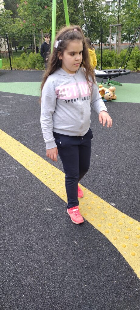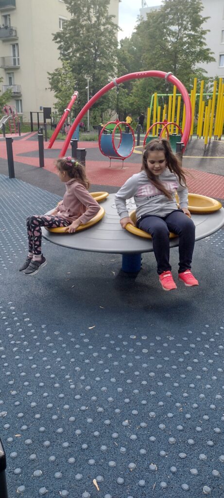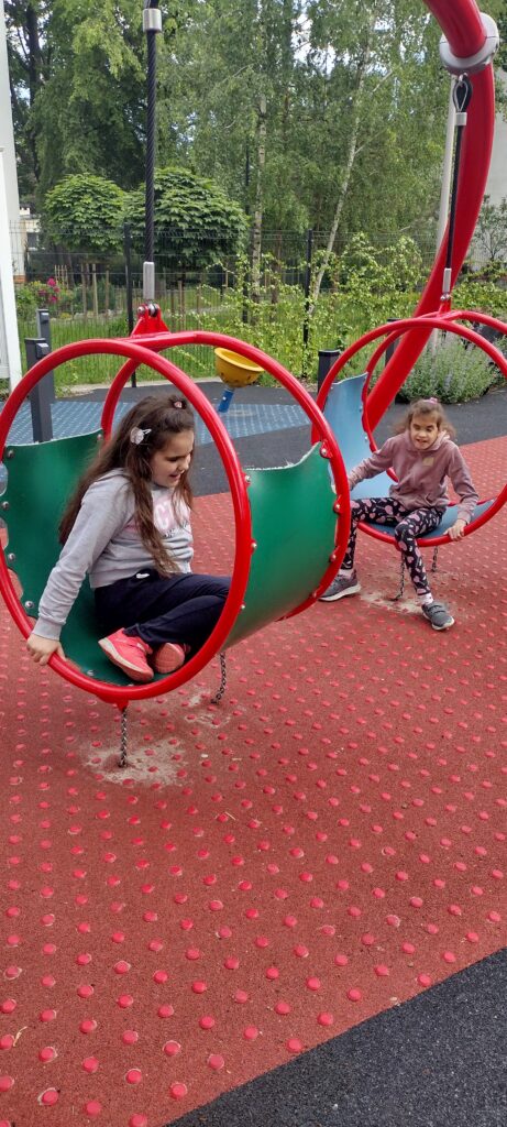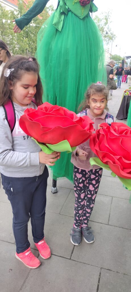Dziewczętom najbardziej spodobały się osoby na szczudłach przebrane za piękne róże. W drodze powrotnej odwiedziłyśmy też plac zabaw na ul. Leśmiana dedykowany osobom niewidomym.