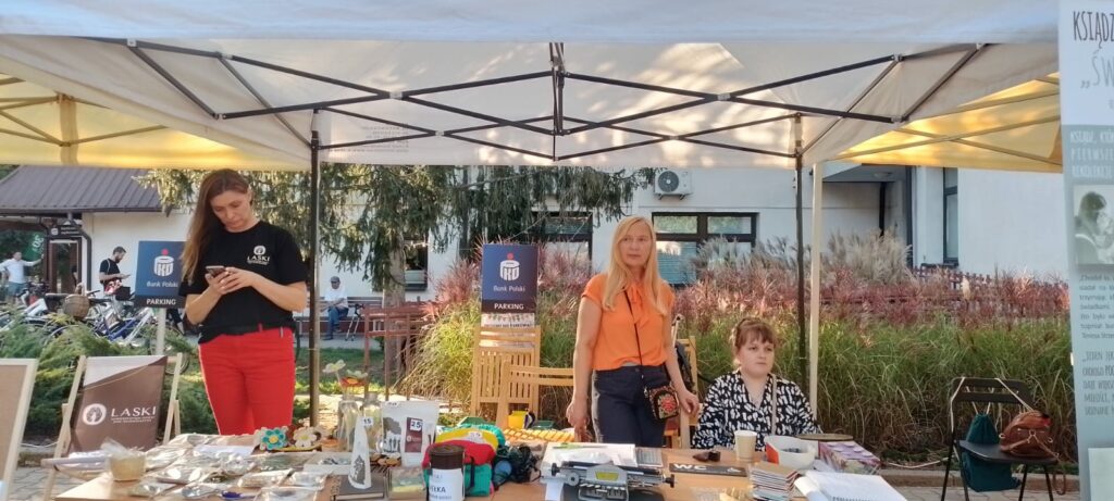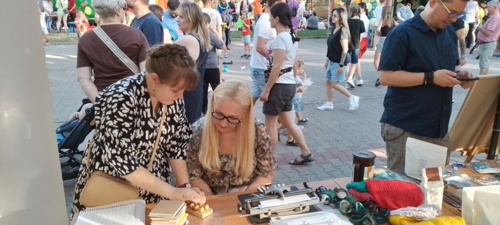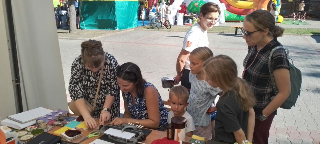 Anastazja „udzielała ” lekcji podstaw pisma Braillea z wykorzystaniem maszyny eriki i tradycyjnej tabliczki z dłutkiem. Ponadto na stoisku można było nabyć kawę, wiele ręcznie wykonanych ozdób przez osoby z dysfunkcją wzroku, książki a także można było przejechać się tandemem. Stoisko cieszyło się dużym zainteresowaniem wśród mieszkańców pikniku, dzięki takim inicjatywom można bardziej przybliżyć problematykę osób z dysfunkcją wzroku.
