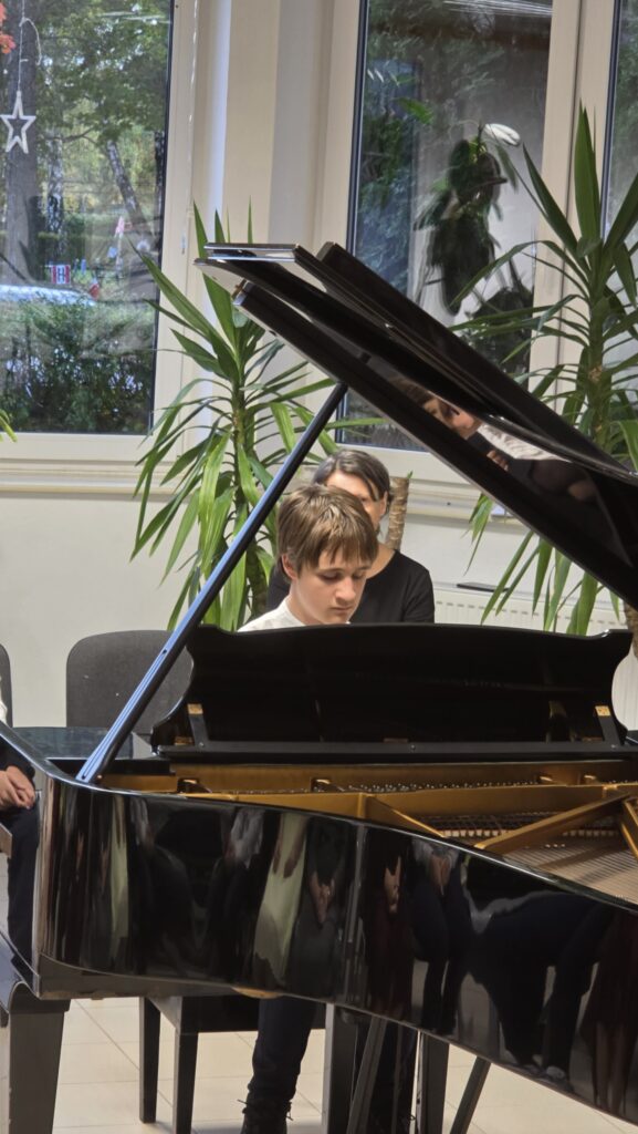 Dnia 13.10.2025 roku społeczność Szkoły Muzycznej im. Edwina Kowalika w Laskach świętowała imieniny swojego Patrona. Jak zawsze podzieliliśmy się z publicznością tym, co nam w sercach gra. W koncercie poprowadzonym przez Panią Dyrektor Beatę Dąbrowską wystąpili uczniowie, nauczyciele i absolwenci Szkoły Muzycznej, oraz uczestnicy Zajęć Rewalidacyjnych Muzycznych. Swoim talentem podzieliła się też dawna absolwentka a obecnie nauczycielka naszej szkoły Anna Faderewska-Kuszaj. Jako gość specjalny wystąpiła niewidoma uczennica PSM II st., im. K. Szymanowskiego w Warszawie uczęszczająca do klasy II pod kierunkiem prof. Aleksandry Kowalik-Burdzy, Maria Kovalewska.