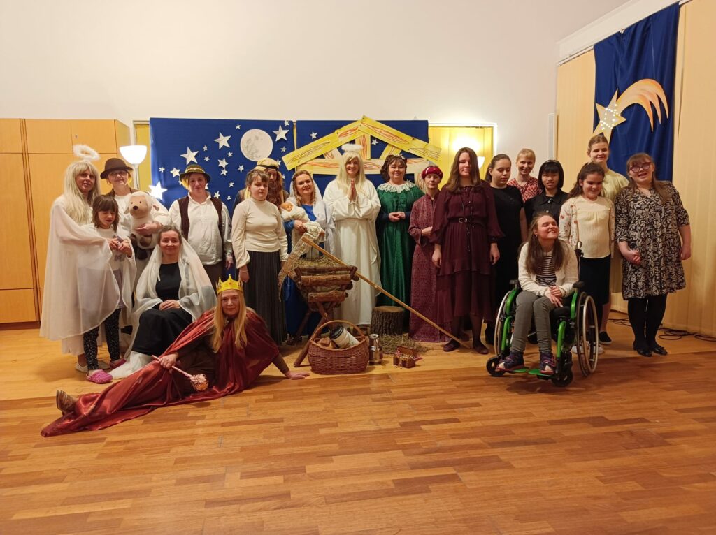 W środę 17 grudnia punktualnie o godz.17.30 na dużej świetlicy w Internacie Dziewcząt odbyły się Jasełka, przygotowane przez panią Basię Kaiser a udział w nich wzięły wychowawczynie oraz dziewczęta z Rady Internatu. Ciekawie napisany scenariusz wprowadził uczestników spotkania w tajemniczą atmosferę oczekiwania i narodzin Dzieciątka Bożego. Zebrani mogli zobaczyć zaspanych pastuszków, których obudzili Aniołowie, scenę ukazującą Maryję i Józefa z narodzonym Jezusem w ubogiej stajence, Trzech Królów , którzy przybyli złożyć pokłon i dary, złego Heroda oraz Śmierć. Przedstawienie zostało wzbogacone pięknym śpiewem kolęd oraz ciekawą scenografią przygotowaną przez panią Ewę Dejek oraz pana Zbyszka Kaisera . Pomocną okazała się również Siostra Jana, która zorganizowała ” wyposażenie”: żłóbek, siano, pniaki drzew a także Siostra Martyna, wspierająca w wyborze strojów. Spektakl spotkał się z ciepłym przyjęciem — publiczność nagrodziła aktorów gromkimi brawami.