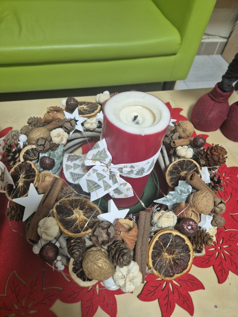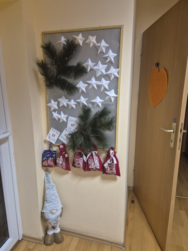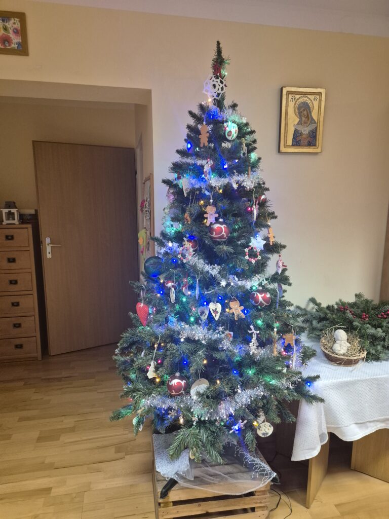 W Internacie Dziewcząt zapanował świąteczny nastrój. Korytarze, dyżurka, taras udekorowane zostały ozdobami świątecznymi, lampkami, które wieczorem tworzą ciepłą, przytulną atmosferę. W salach we wszystkich grupach stanęły pięknie ubrane choinki. Przy dekorowaniu wszyscy chętnie pomagali — było wspólne ubieranie, słuchanie pieśni adwentowych. W dniach przedświątecznych w wielu grupach odbyło się pieczenie ciast na kolację wigilijną.