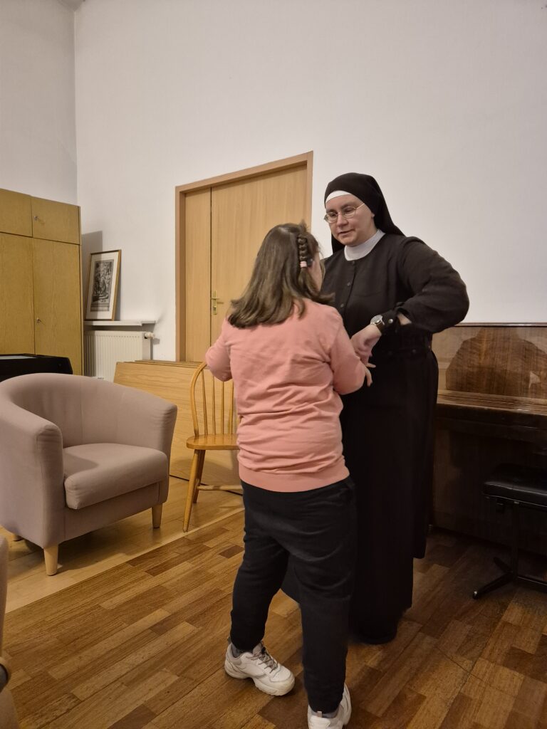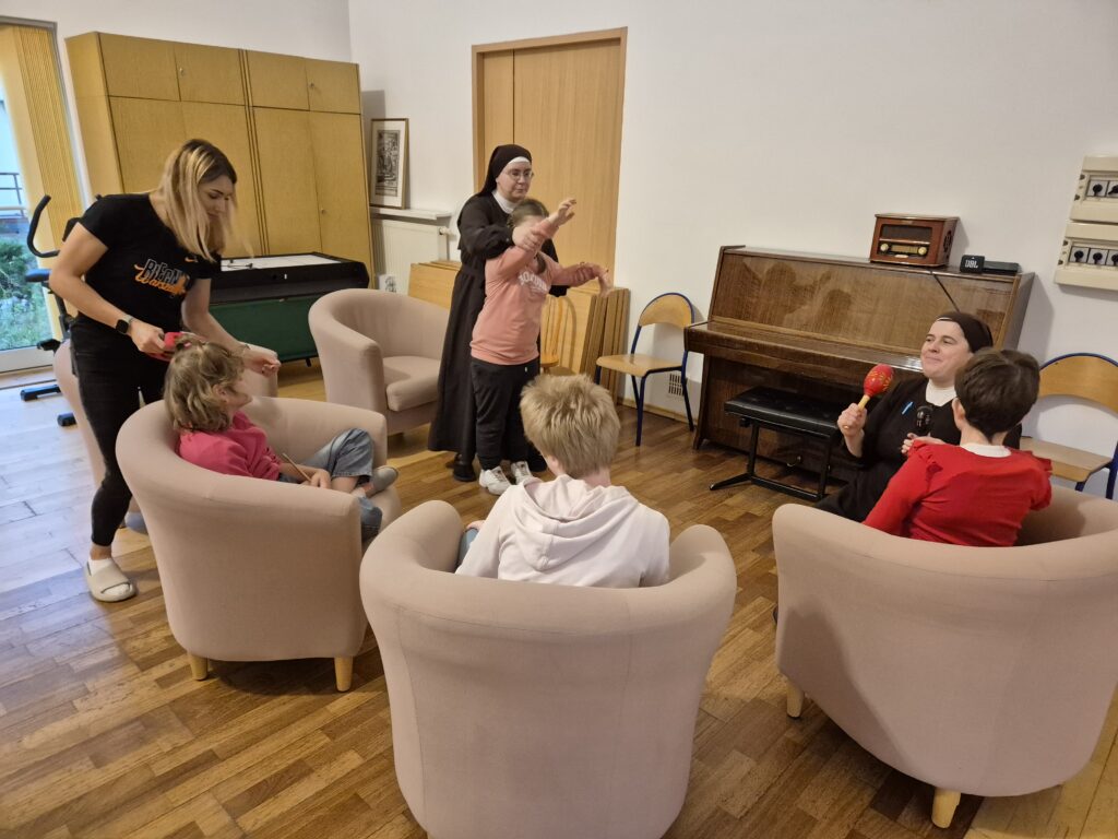 Czasami zdarzają się sytuacje losowe, kiedy trzeba zastąpić panią Jadwigę. To wtedy wkracza Siostra Marta z zespołem wychowawczym grupy IV, który potrafi wtedy na szybko zorganizować dla dziewczynek na świetlicy zajęcia taneczne z użyciem grzechotek, bębenków i muzyki porywającej do tańca. Taka aktywność również sprawia dziewczynkom wiele radości i możliwości wyrażenia swoich emocji.