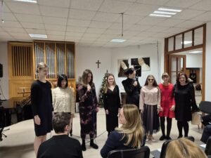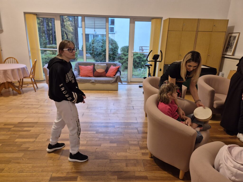 W Internacie dziewczęta z IV grupy: Paulina, Julita, Zlata a czasami i Wiktoria chętnie uczestniczą w regularnych zajęciach umuzykalniających prowadzonych przez panią Jadwigę Pawlik. Zajęcia te stanowią stabilny punkt w harmonogramie, oferując im nie tylko naukę, ale też formę rozrywki, relaksu i budowania relacji, co jest kluczowe dla ich ogólnego dobrostanu i poczucia bezpieczeństwa.