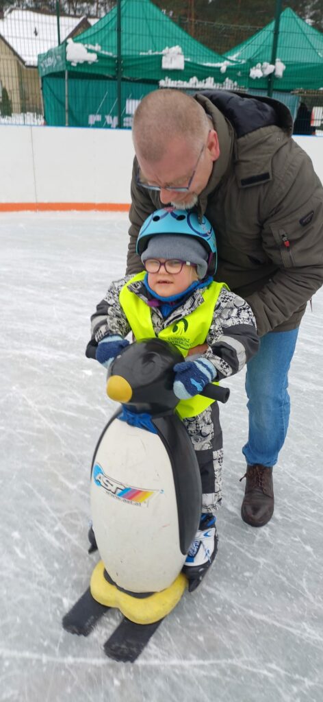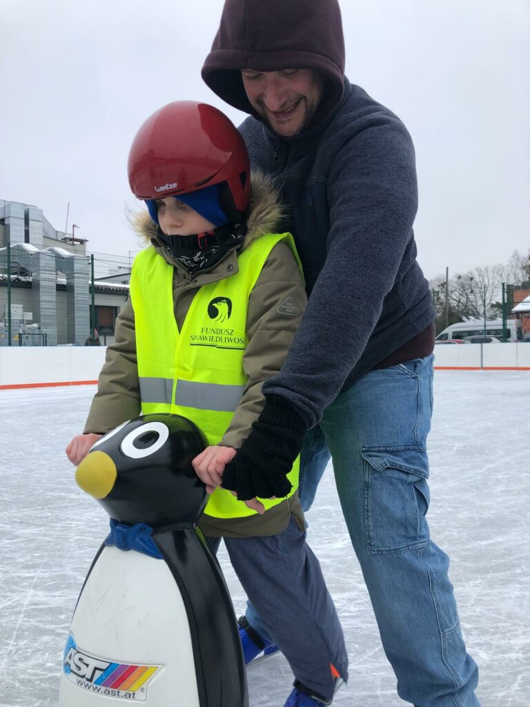 I my wybraliśmy się na pobliskie lodowisko,  gdzie przedszkolaki wraz ze swoimi opiekunami  aktywnie i radośnie spędzały czas. Nie zawsze było łatwo, utrzymanie się na tafli lodu to nie lada wyzwanie. Początki bywaj trudne, ale wytrwałość popłaca. Dziękujemy księdzu Sebastianowi za towarzyszenie nam we wspólnej zabawie oraz panu Sławkowi za życzliwe przyjęcie i  udostępnienie lodowiska.